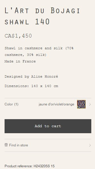 보자기 한 장당 160만원정도고 전세계 매장에서 판매함