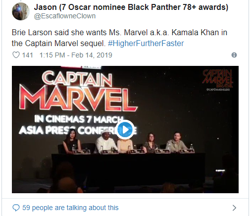 미즈 마블이 단독 영화로 나올지 캡틴마블의 후속편에 나올지 미지수인데 브리 라슨도 다음 편에 함께 하고 싶은 캐릭터를 묻는 질문에 카말라 칸을 꼽았네요